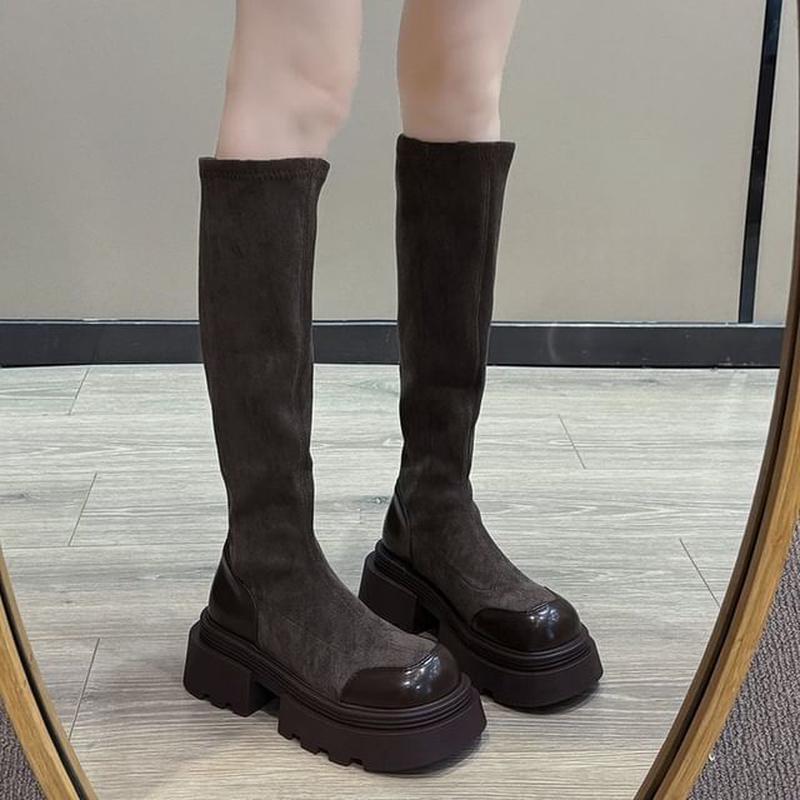 High Boots Button Faux Suede Toe Knee Pointed Black 39